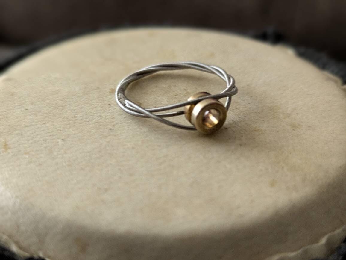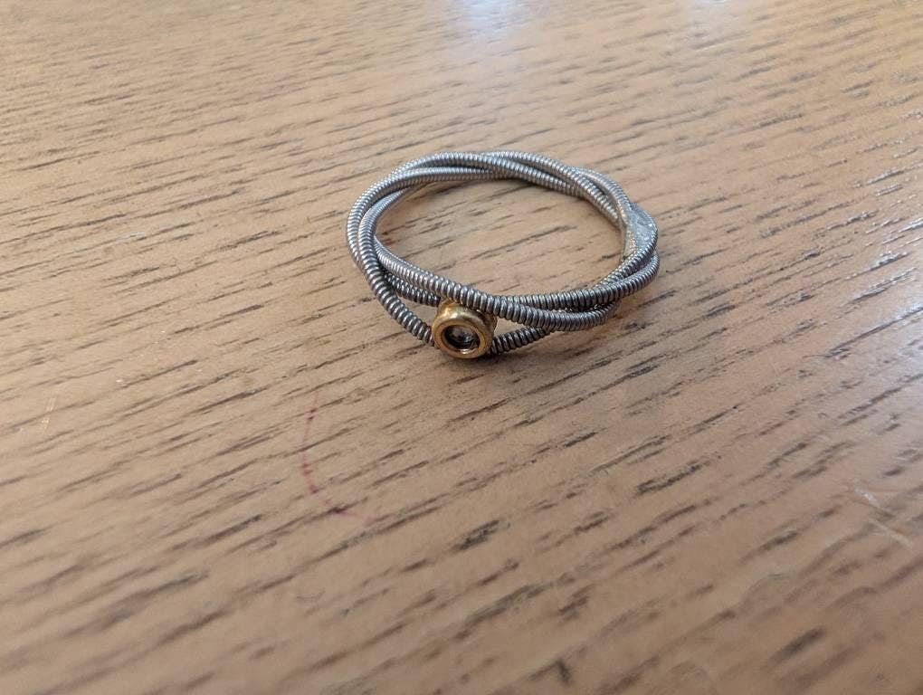 Boho Guitar String Ring: Silver with Brass Accent