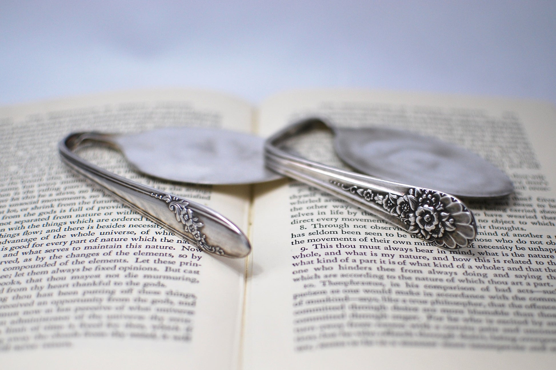 These are not replicas. They are real vintage serving spoons, carefully bent and shaped into elegant, functional bookmarks.