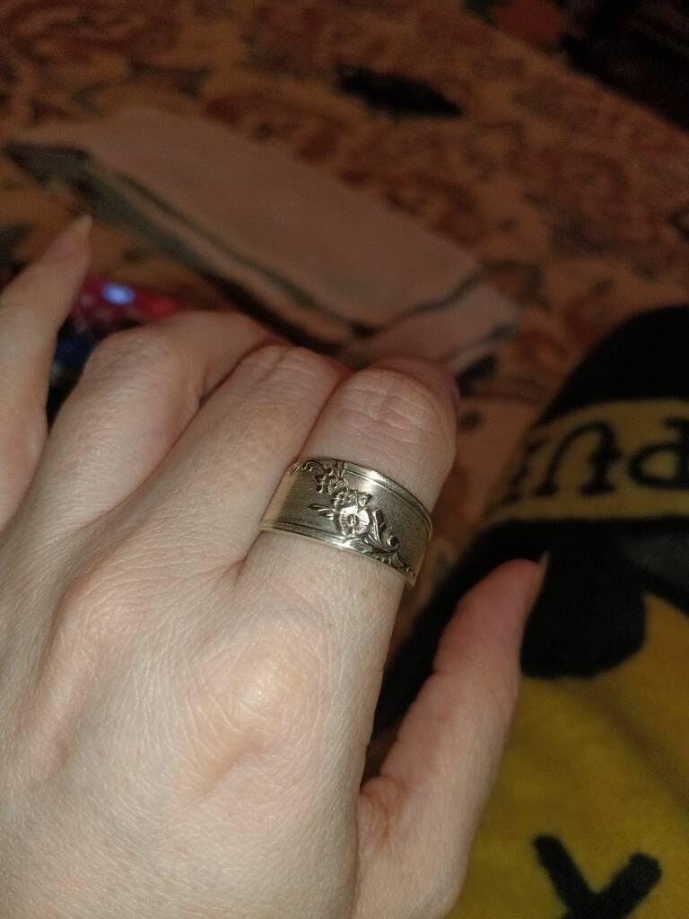 Silver Floral Spoon Ring: Antique Silver Plated Queen Bess Pattern
